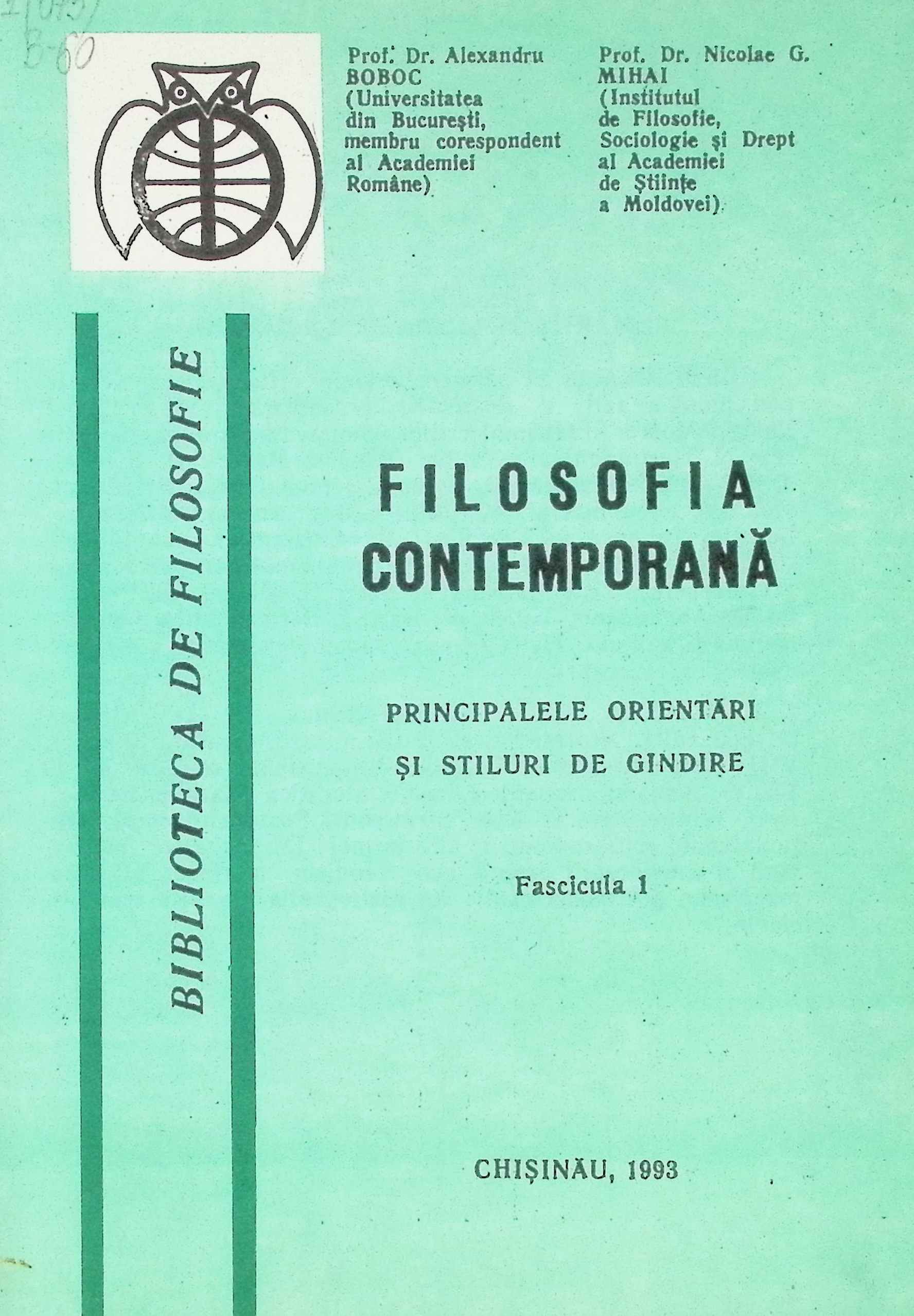 Filosofia contemporană . Principalele orientări și stiluri de gîndire. Fascicula 1