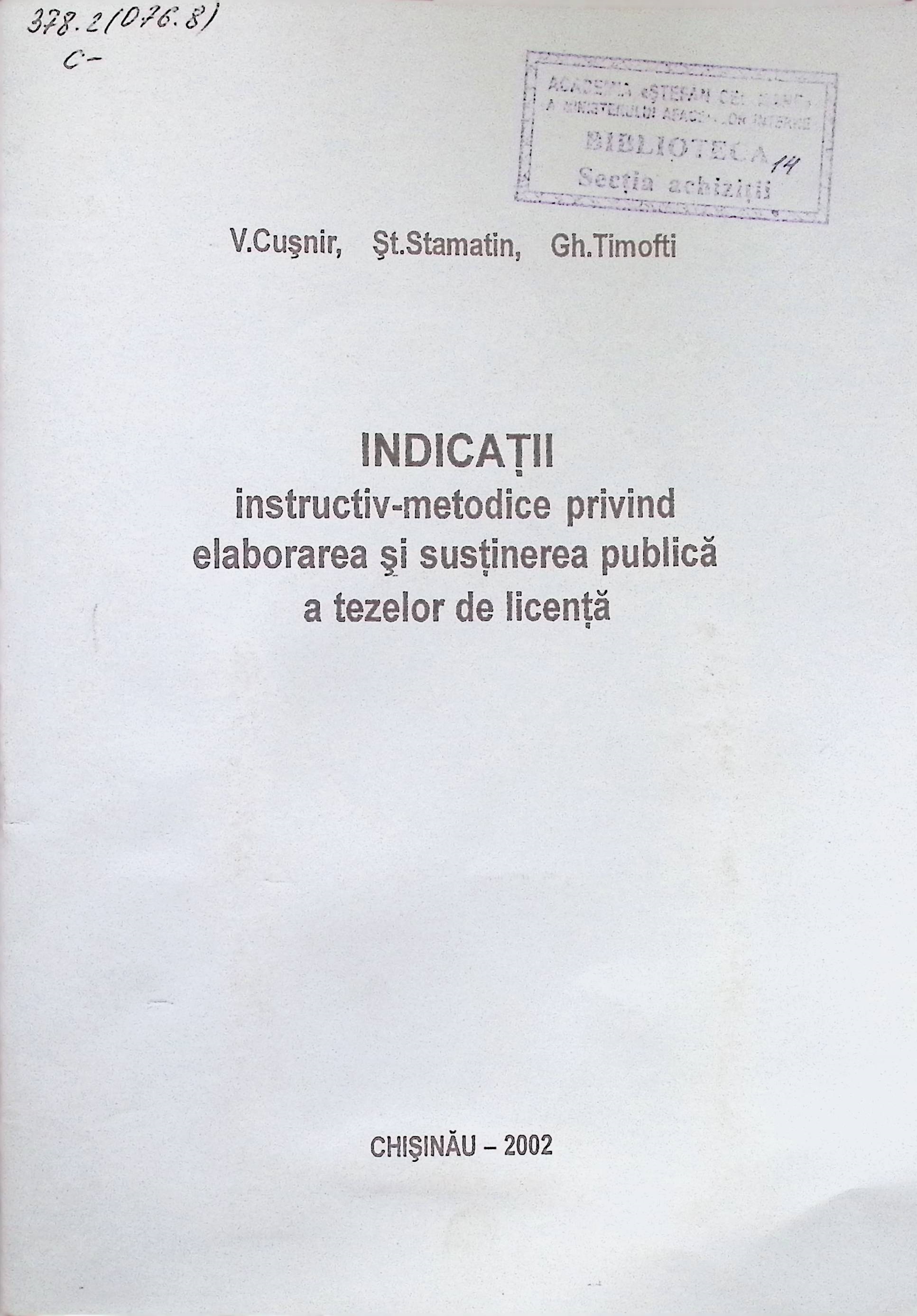Indicaţii instructiv-metodice privind elaborarea şi susţinerea publică a tezelor de licenţă