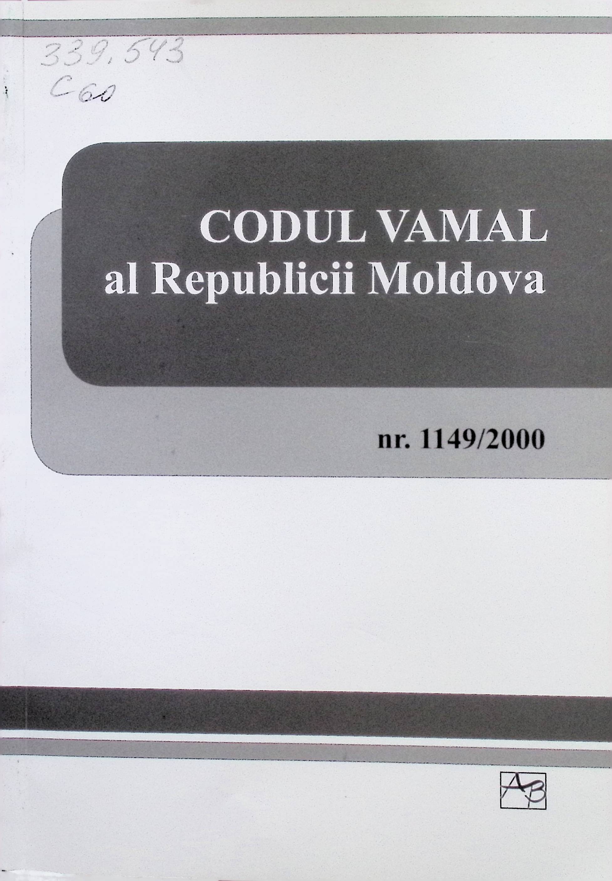 Codul vamal al Republicii Moldova: nr. 1149/2000