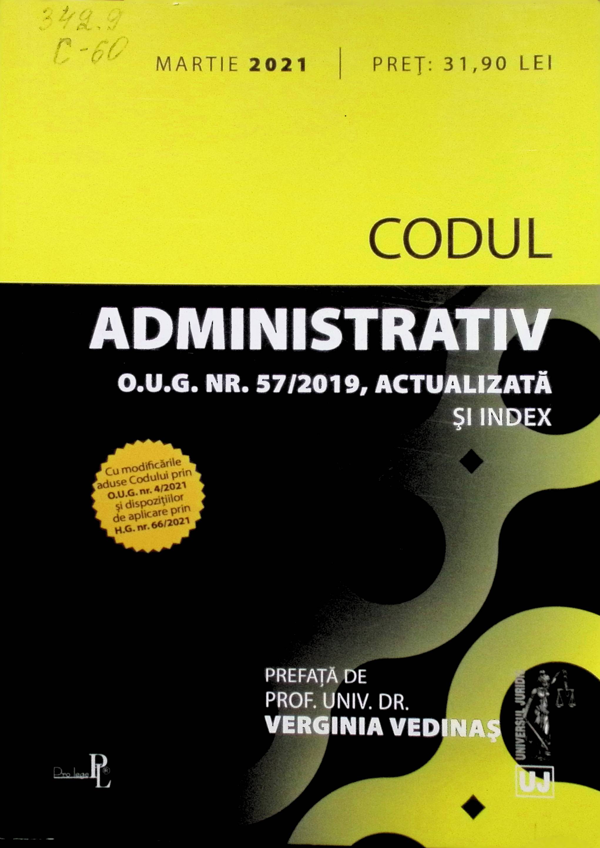 Codul administrativ. O.U.G. nr. 57/2019, actualizată și index