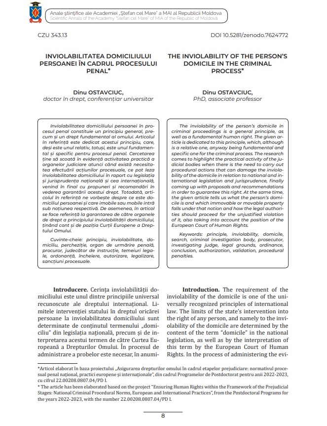 Titlu paralel:The Inviolability of the Person’s Domicile in the Criminal Process