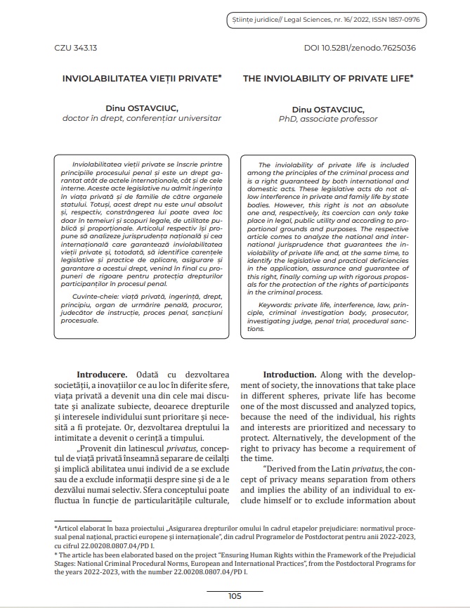 Informații la titlu:În: Anale ştiinţifice ale Academiei „Ştefan cel Mare” a Ministerului Afacerilor Interne al Republicii Moldova: Ştiinţe juridice. nr. 16 = Scientific Annals of the Academy „Stefan cel Mare” of the Ministry of Internal Affairs of the Republic of Moldova: Legal sciences. nr. 16 / Departamentul Ştiinţă, Central and Eastern European Online Library; colegiul de redacție: Iurie Larii (redactor-șef) [et al.]; traducere: Angela Pareniuc. Chişinău: Departamentul Editorial-Poligrafic al Academiei „Ştefan cel Mare”, 2023, pp. 105-132