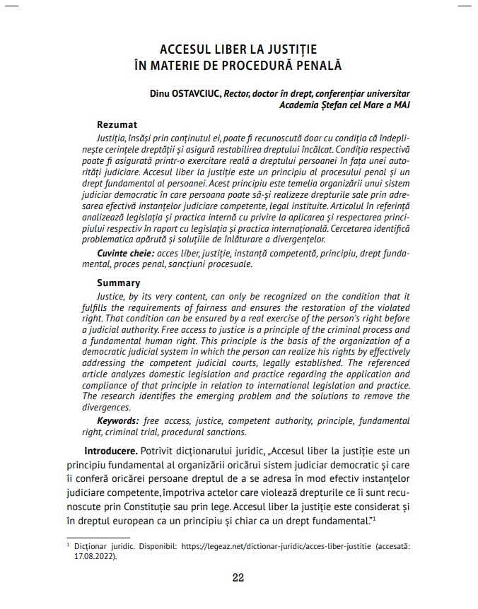 Denumirea:Accesul liber la justiție în materie de procedură penală