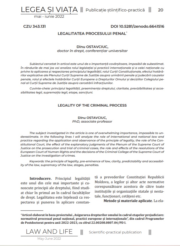 În: Legea şi Viaţa. 2022, nr. 5-6, pp. 20-35