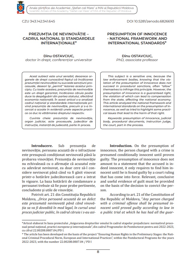 Titlu paralel:Presumption of Innocence – National Framework and International Standards