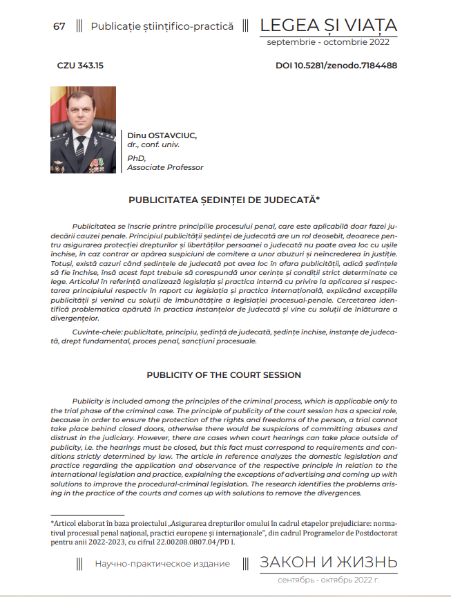 În: Legea şi Viaţa. 2022, nr. 9-10, pp. 63-73 (67-77)