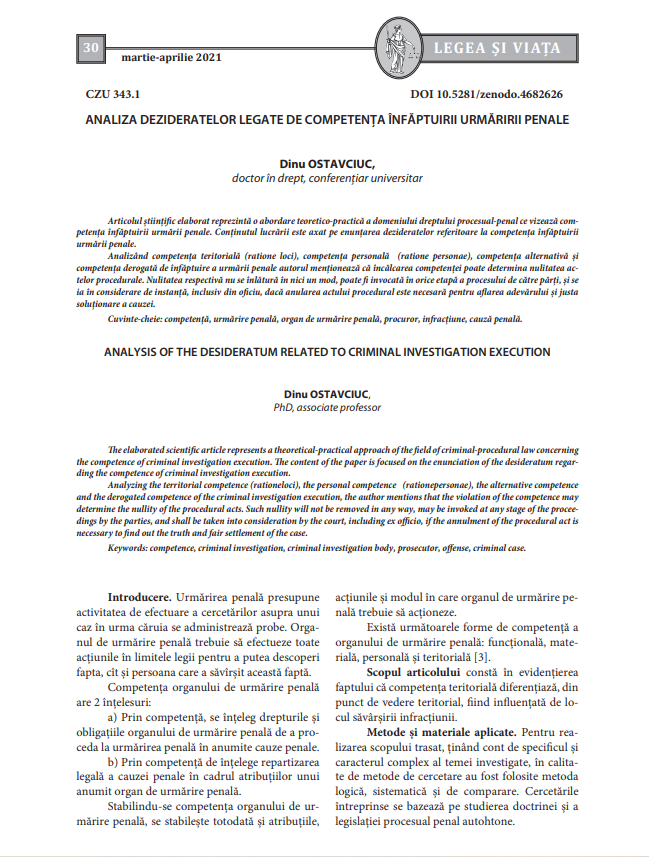În: Legea şi Viaţa. Revistă ştiinţifico-practică. 2021, nr. 3/4, pp. 30-39