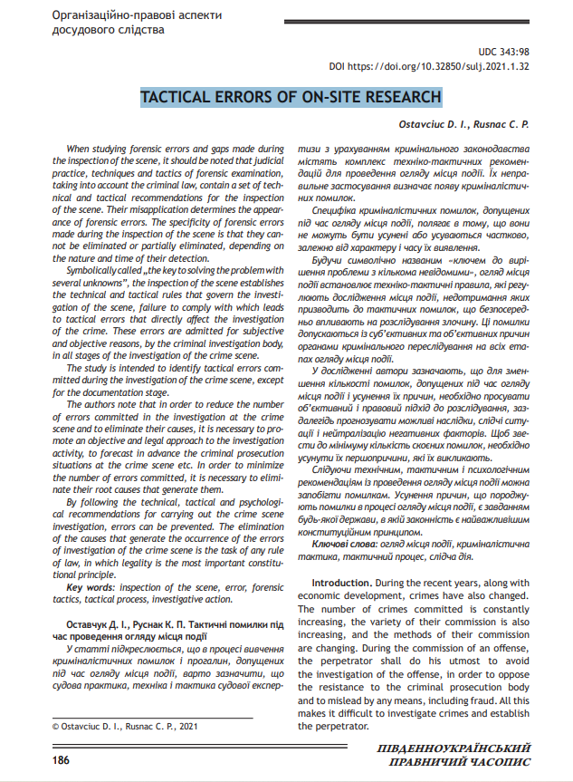 În: Південноукраїнський правничий часопис: наук. журн. / Одес. держ. ун-т внутр. справ. Одеса. 2021, nr. 1, pp. 186-192