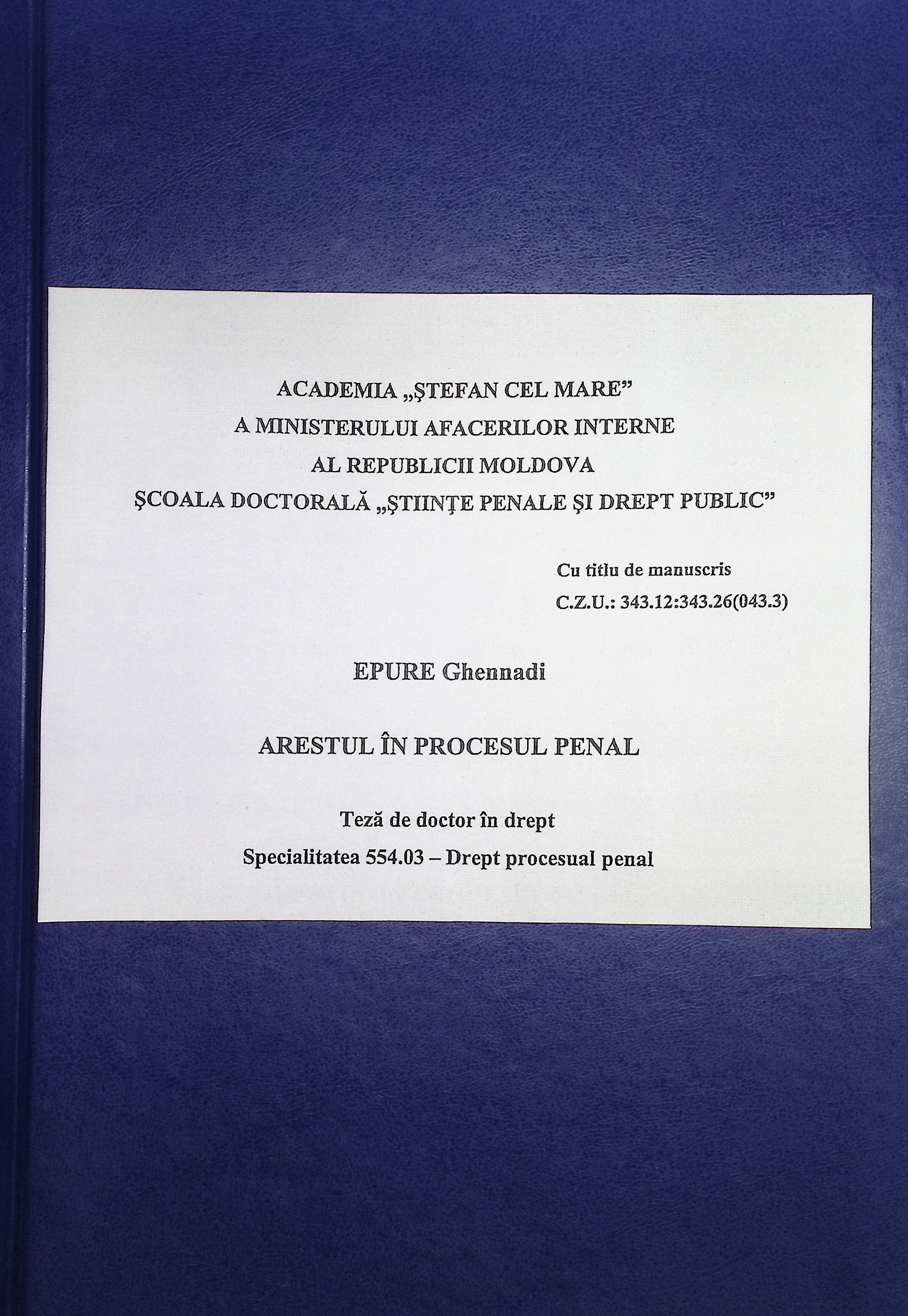 Mențiuni de repsonsabilitate:Academia „Ștefan cel Mare” a Ministerului Afacerilor Interne al Republicii Moldova. Școala Doctorală „Științe Penale și Drept Public”