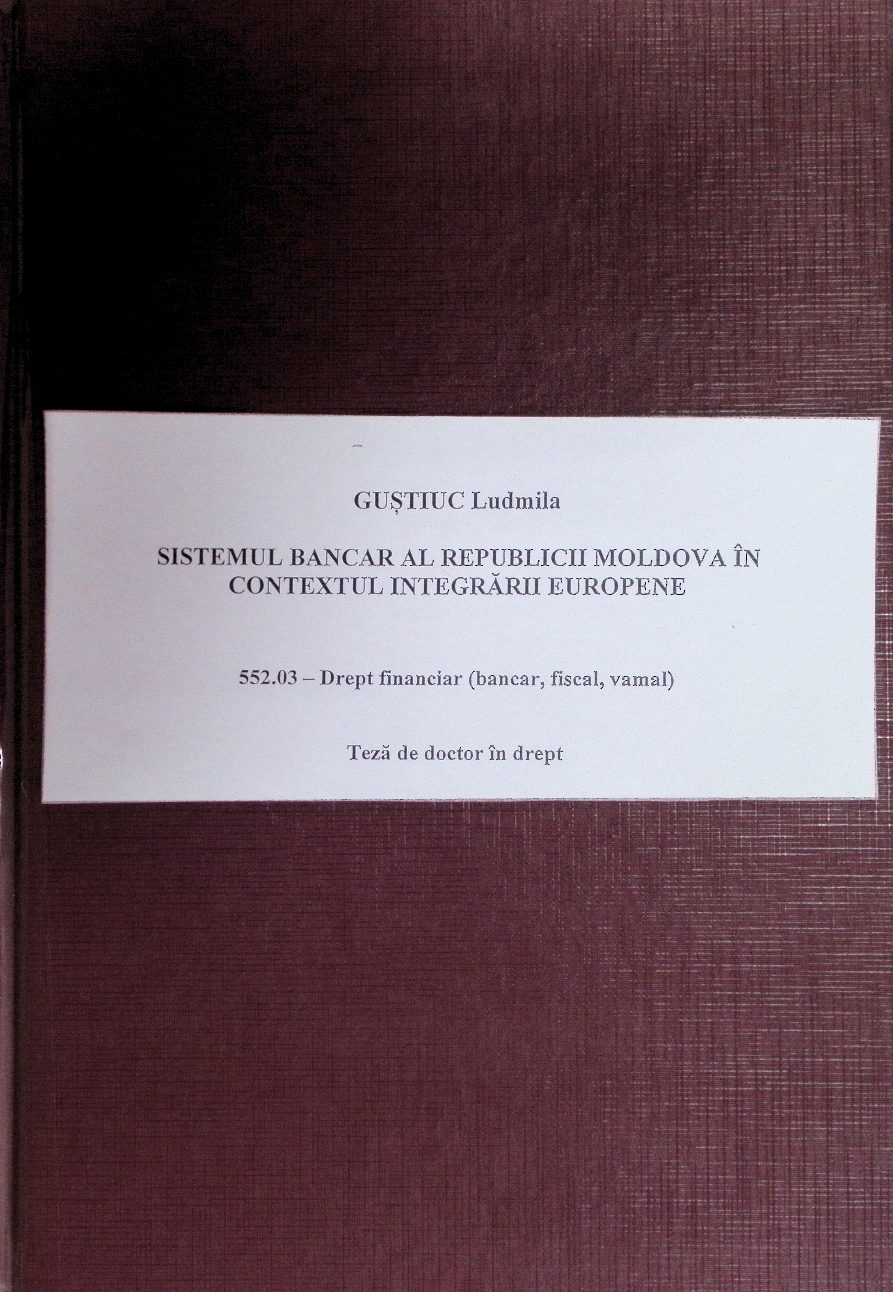 Denumirea:Sistemul bancar al Republicii Moldova în contextul integrării europene