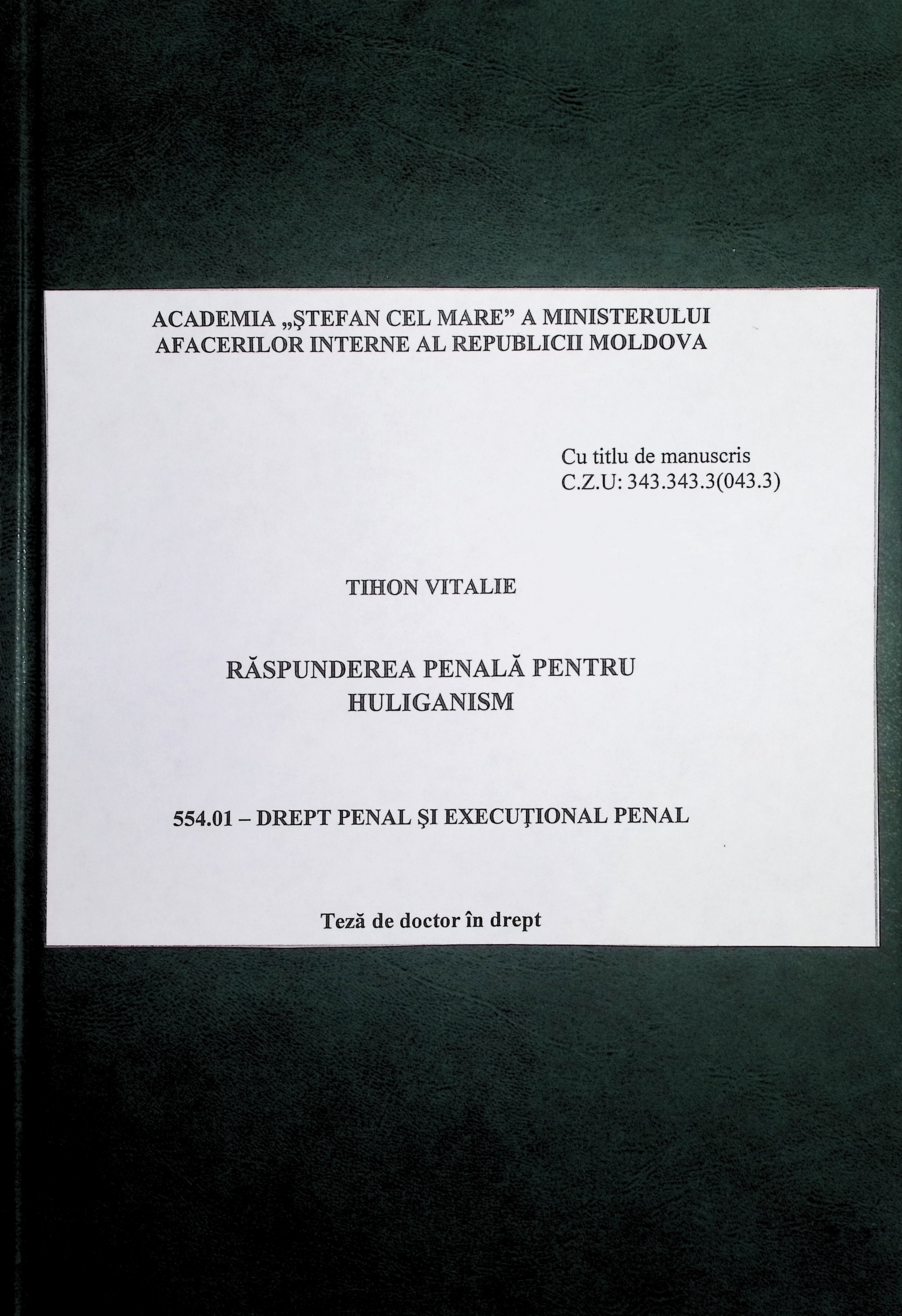 Teză de doctor în drept. 554.01 - Drept penal și execuțional penal