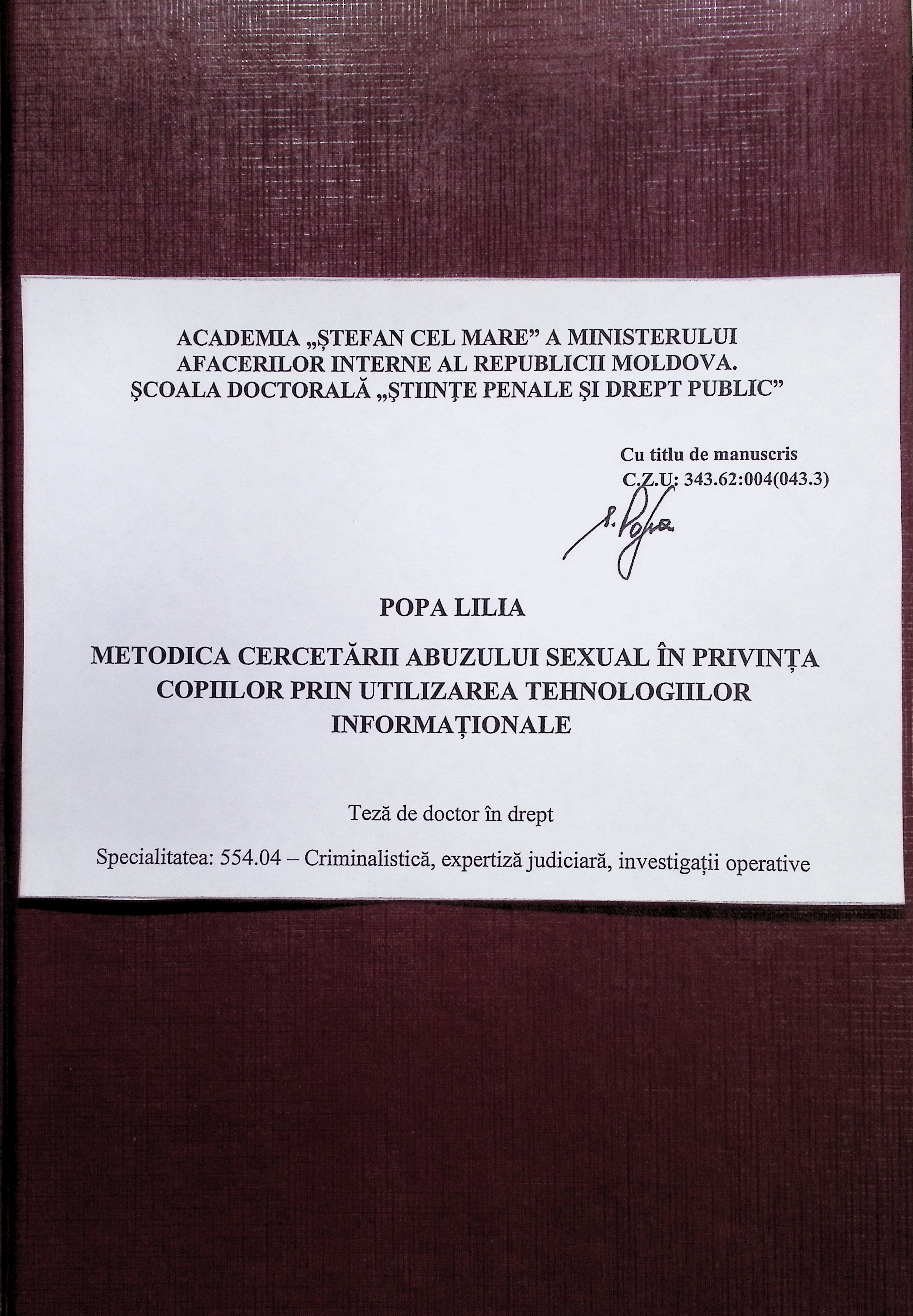 Denumirea:Metodica cercetării abuzului sexual în privința copiilor prin utilizarea tehnologiilor informaționale