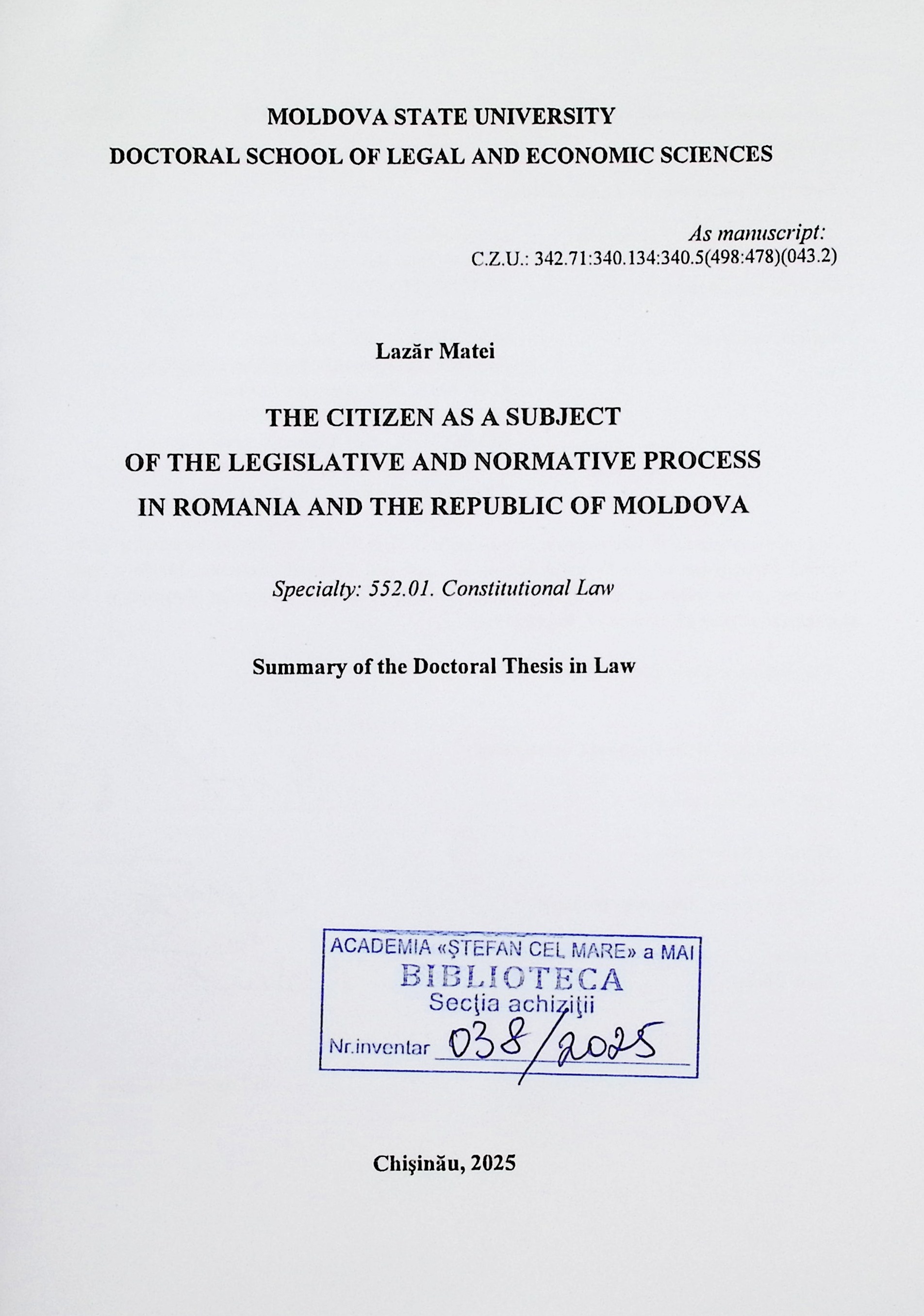 The citizen as a subject of the legislative and normative process in Romania and the Republic of Moldova