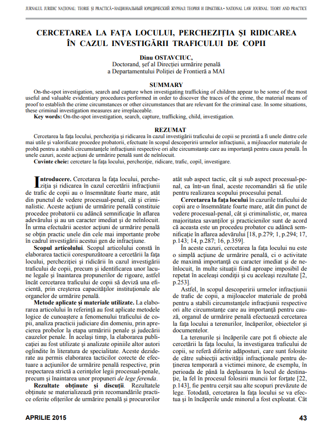 Cercetarea la faţa locului, percheziţia şi ridicarea în cazul investigării traficului de copii