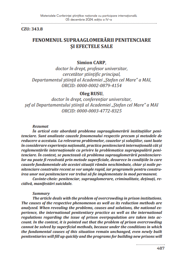 Informații la titlu:În: Protecția drepturilor și libertăților fundamentale ale omului în procesul asigurării ordinii și securității publice: Materialele Conferinței științifice naționale cu participare internațională din 05 decembrie 2024. Ediția a 4-a / comitetul ştiinţific: Dinu Ostavciuc (preşedinte) [et al.]; Ministerul Afacerilor Interne al Republicii Moldova, Academia „Ştefan cel Mare”. Chişinău: Departamentul Editorial-Poligrafic al Academiei „Ştefan cel Mare”, 2025, pp. 487-499.