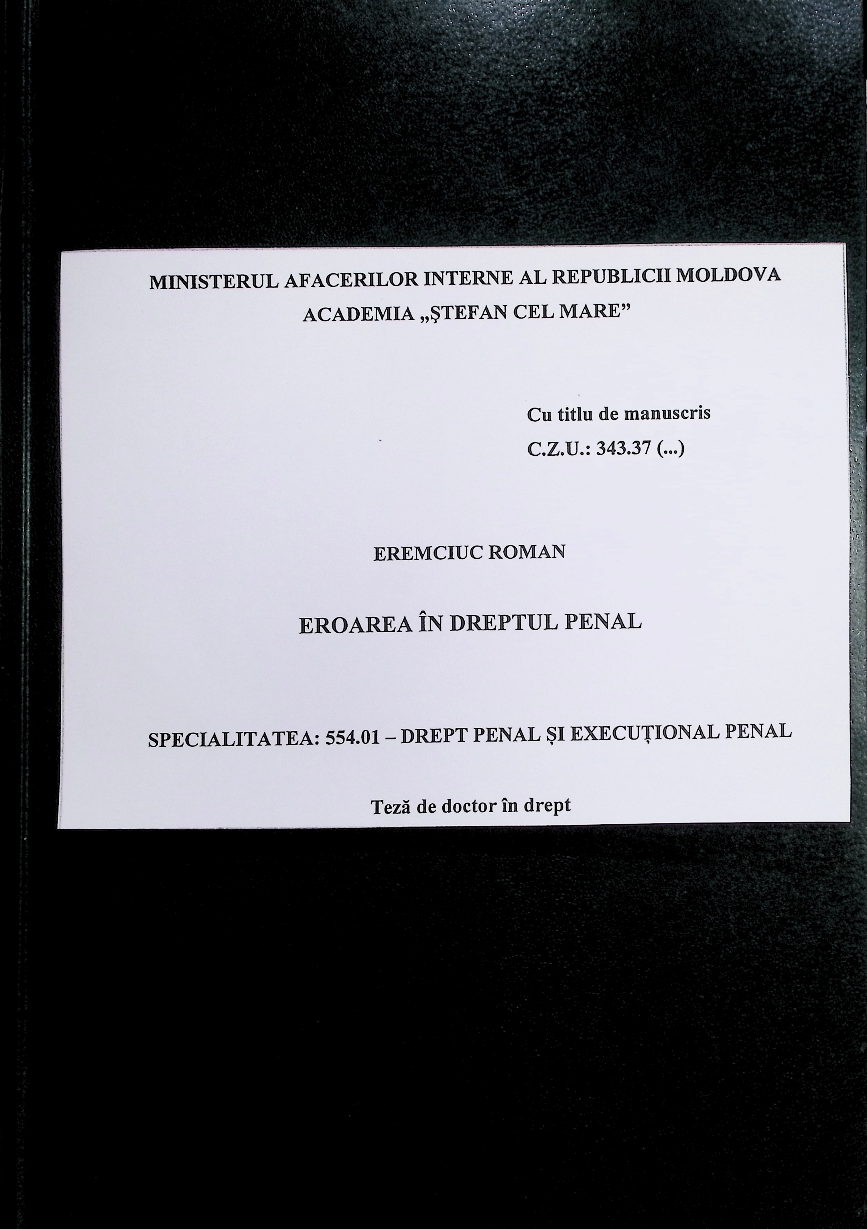 Teză de doctor în drept. Drept penal și execuțional penal