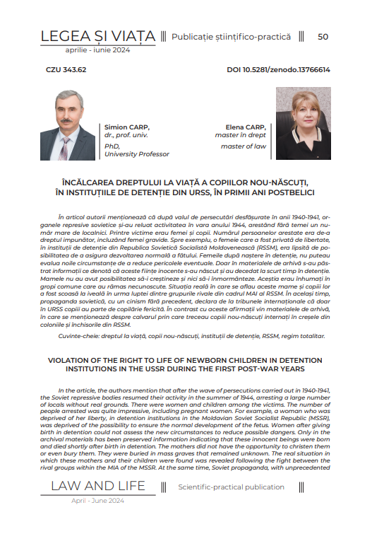 Încălcarea dreptului la viață a copiilor nou-născuți, în instituțiile de detenție din URSS, în primii ani postbelici