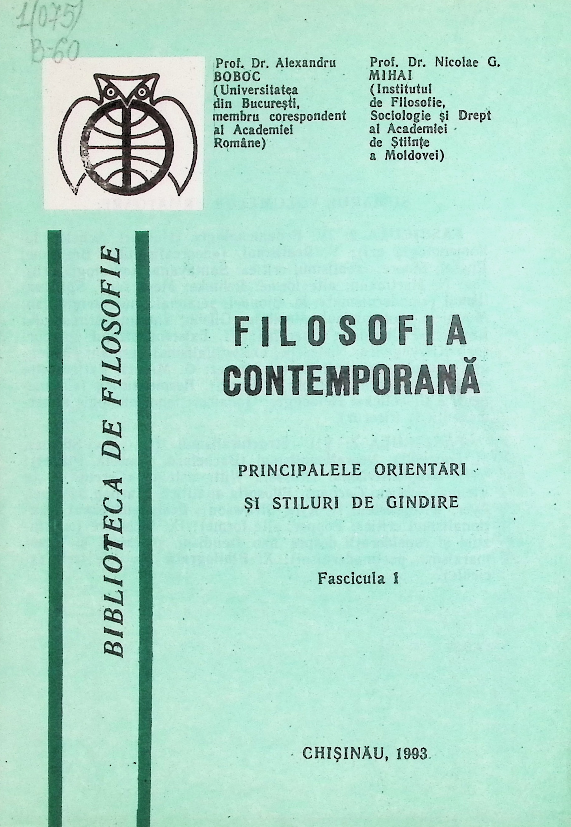 Filosofia contemporană : Principalele orientări și stiluri de gîndire
