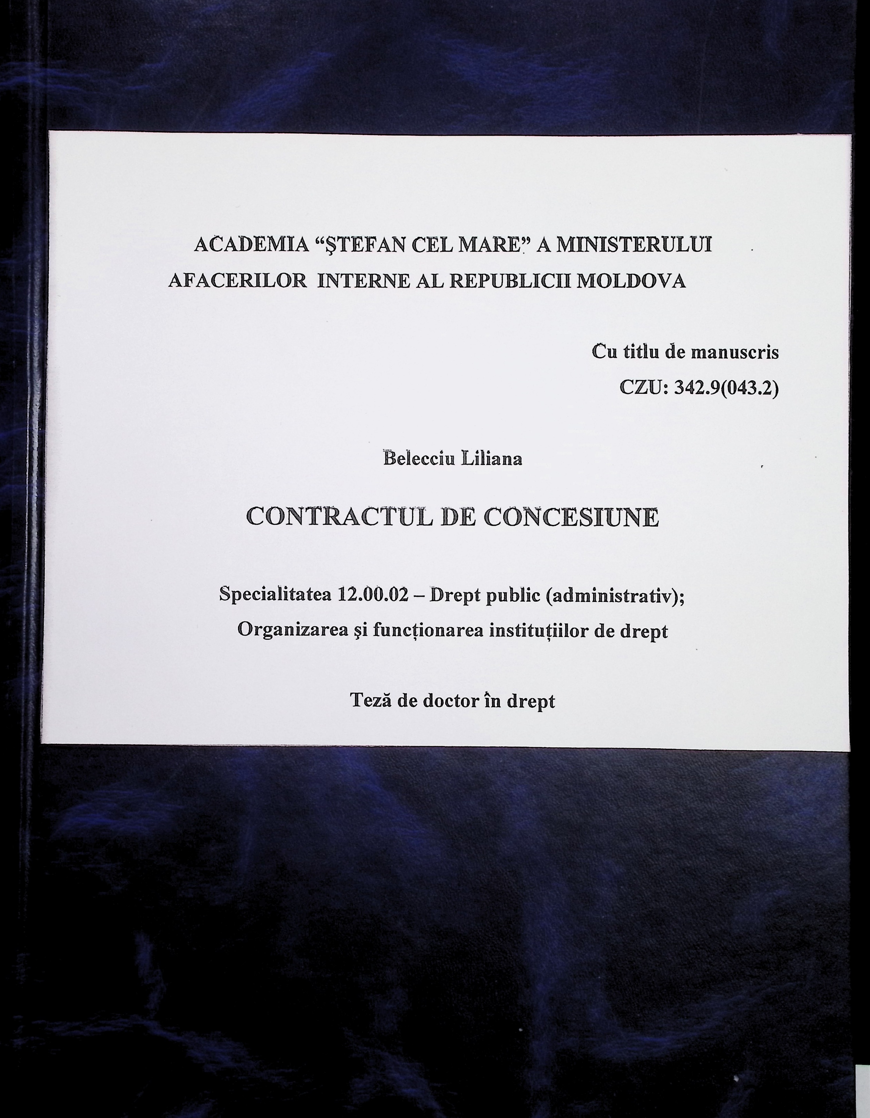Informații la titlu:Teză de doctor în drept. Specialitatea 12.00.02 - Drept public (administrativ) ; Organizarea și funcționarea instituțiilor de drept