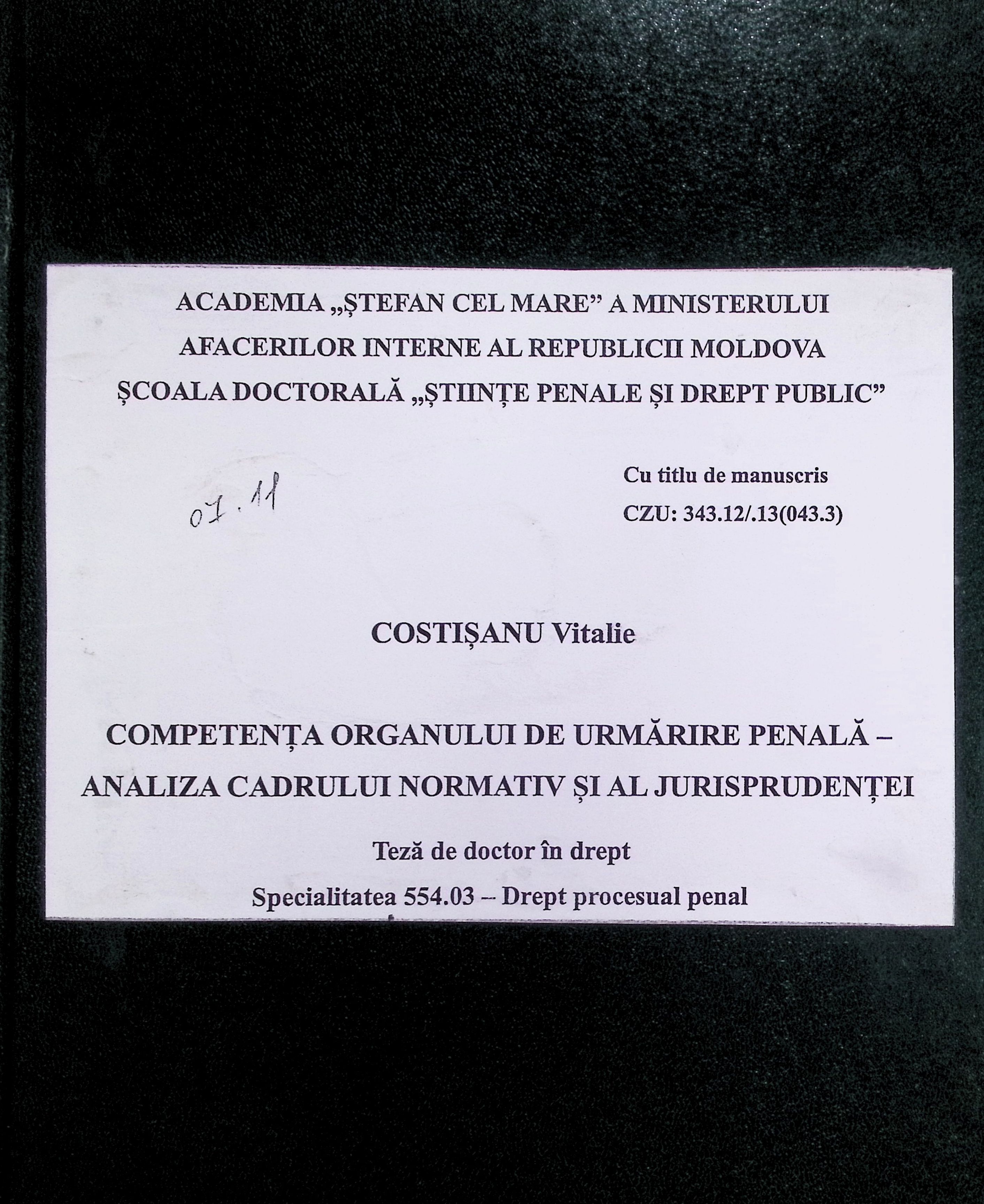 Mențiuni de repsonsabilitate:Academia „Ștefan cel Mare” a Ministerului Afacerilor Interne al Republicii Moldova. Școala Doctorală „Științe Penale și Drept Public”
