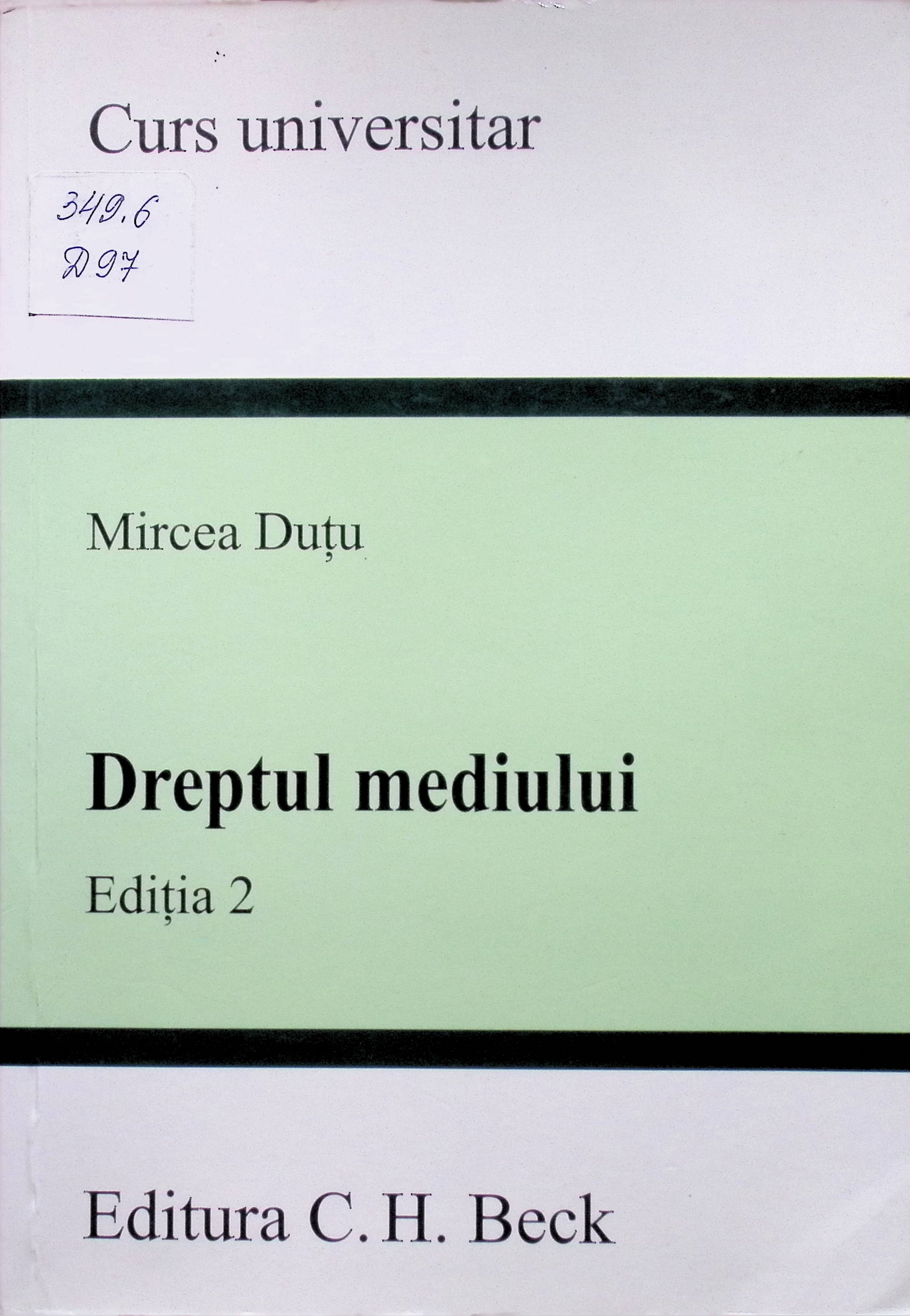 evoluția dreptului mediului, izvoarele dreptului mediului, principiile dreptului mediului, instituțiile mediului, protecția mediului, răspunderea în dreptul mediului, monumente ale naturii, ecologie