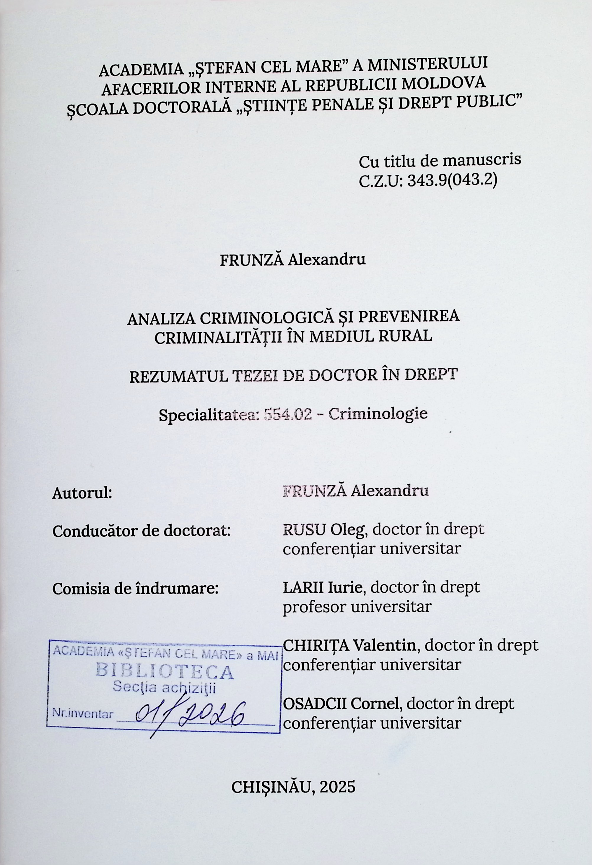 Analiza criminologică și prevenirea criminalității în mediul rural