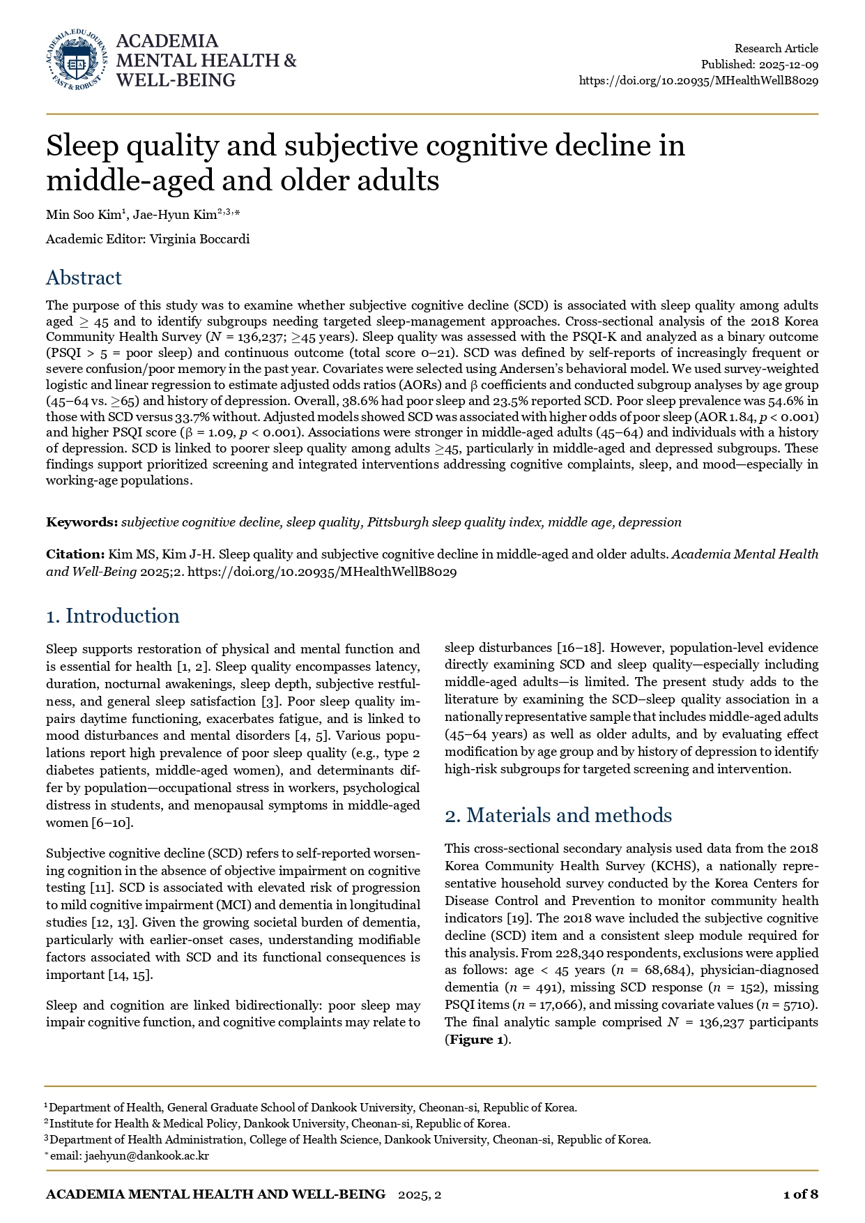 Denumirea:Sleep quality and subjective cognitive decline in middle-aged and older adults