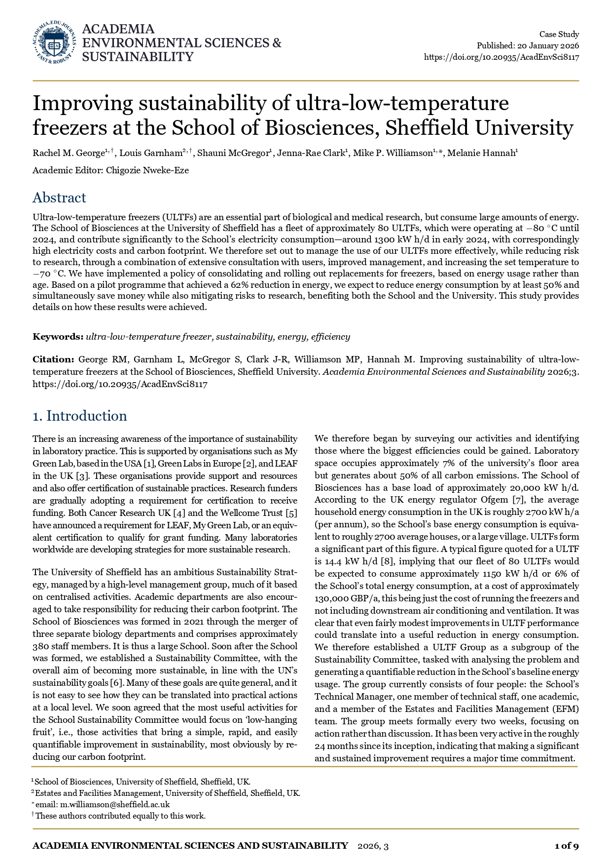 Informații la titlu:În: Academia Environmental Sciences and Sustainability / Published: 20 January 2026 / School of Biosciences, University of Sheffield, Sheffield, UK. Estates and Facilities Management, University of Sheffield, Sheffield, UK