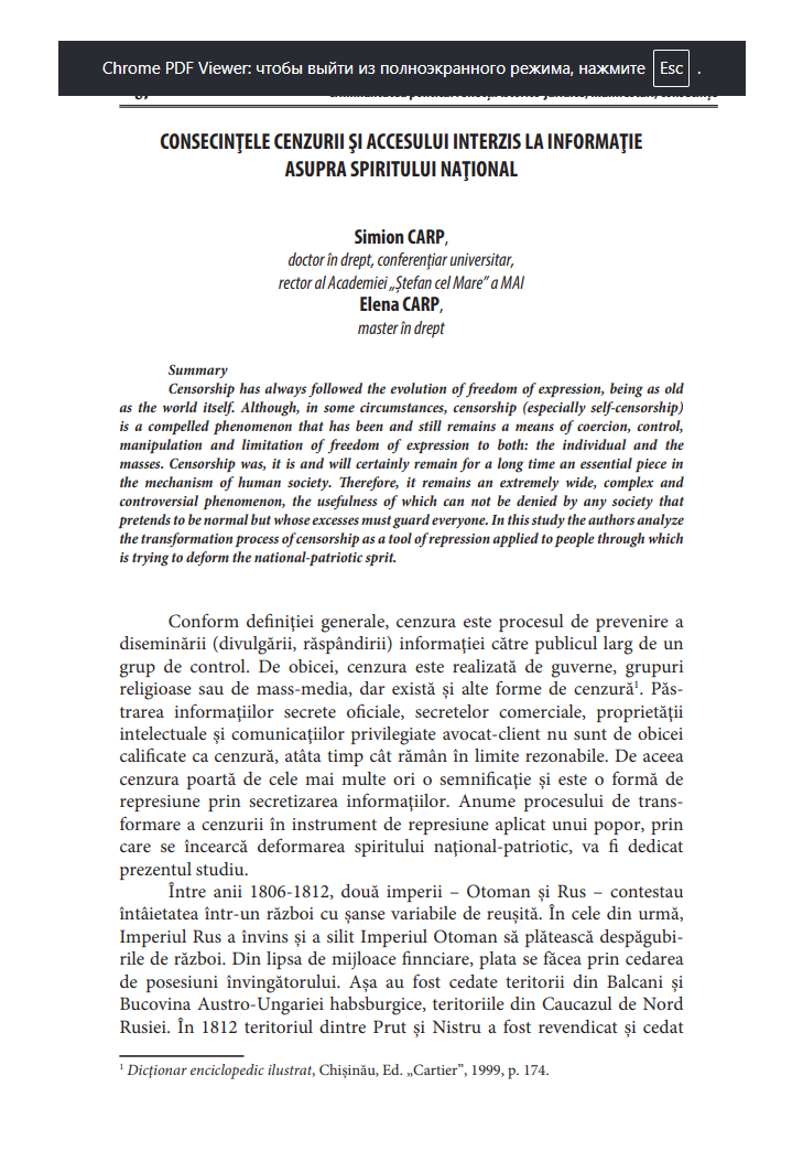 Cuvinte cheie:cenzură, acces la informație, spirit național, grup de control, informații secrete, represiuni, deformarea spiritului, istorie distorsionată,