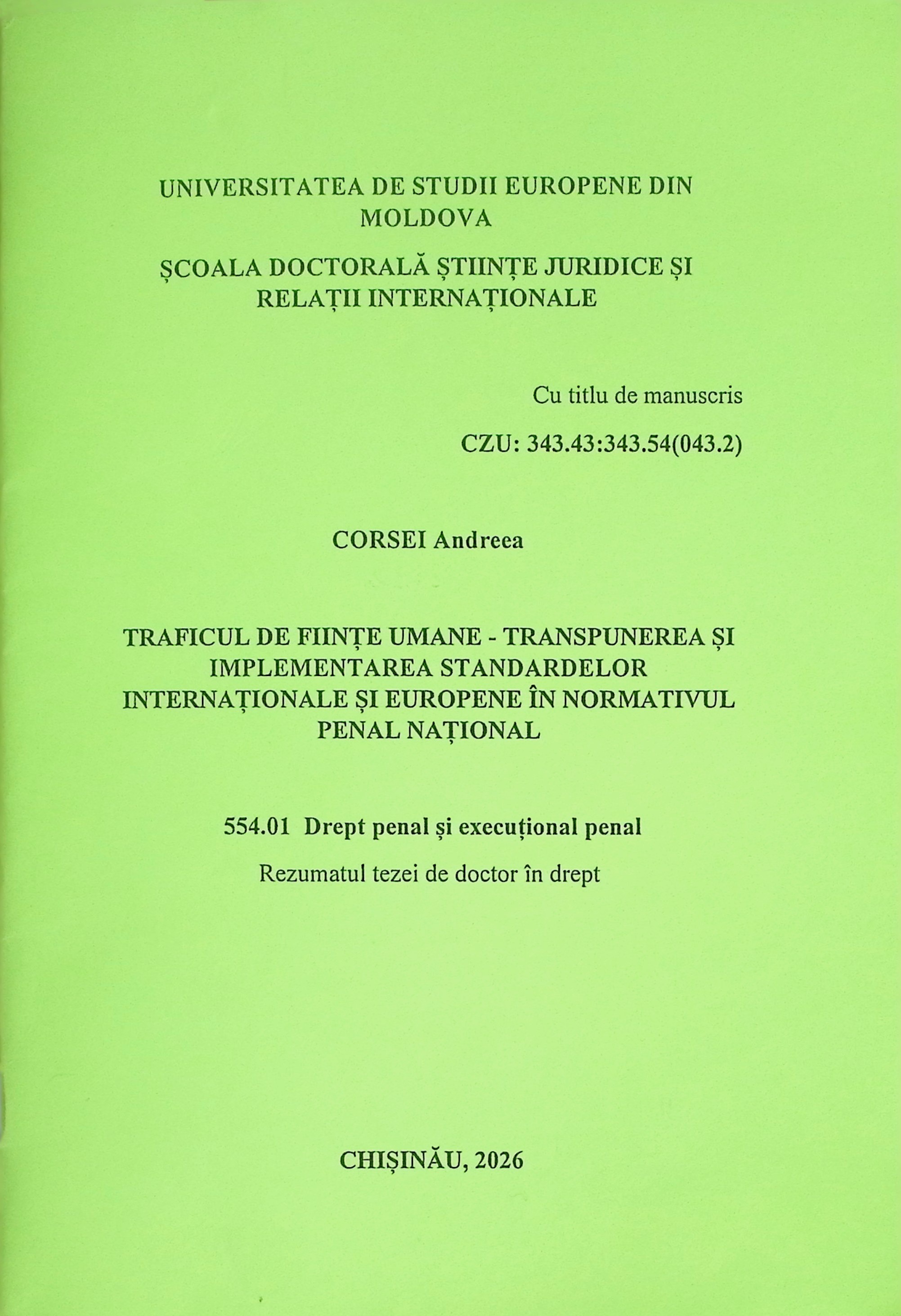 Denumirea:Traficul de ființe umane - transpunerea și implementarea standardelor internaționale și europene în normativul penal național: Rezumatul tezei de doctor în drept