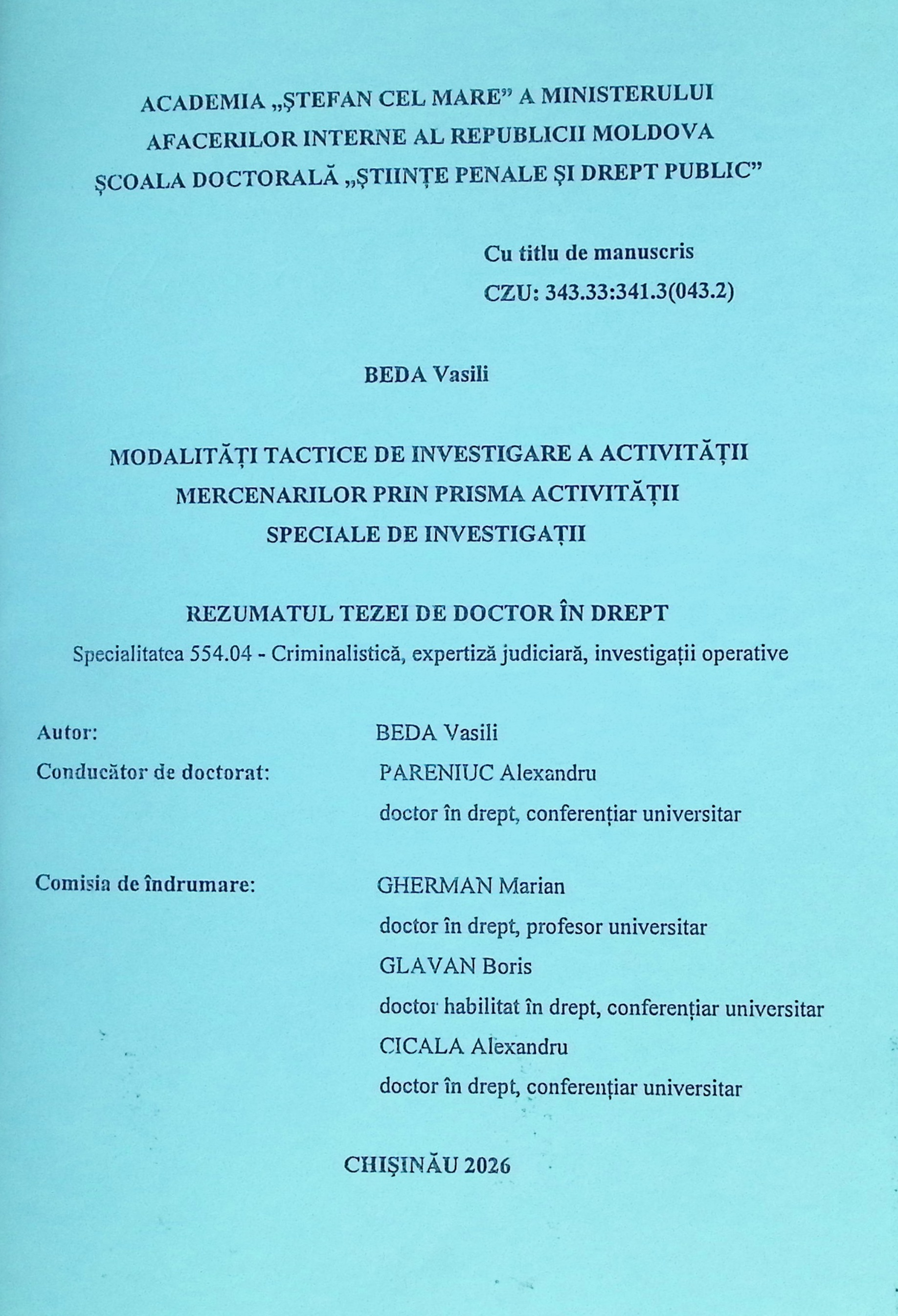 Denumirea:Modalități tactice de investigare a activității mercenarilor prin prisma activității speciale de investigații: Rezumatul tezei de doctor în drept