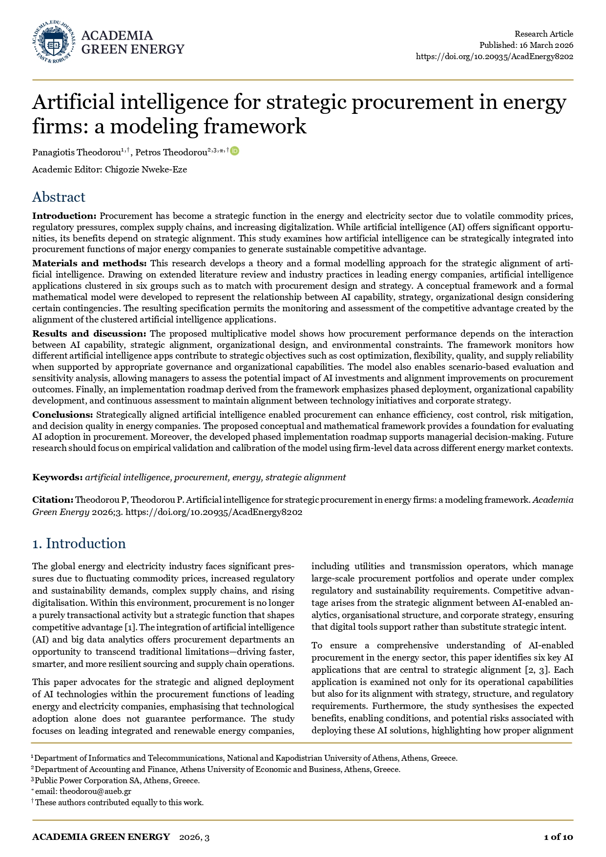 Informații la titlu:În: Academia Green Energy 2026; 3 / Published: 16 March 2026 / Department of Informatics and Telecommunications, National and Kapodistrian University of Athens, Athens, Greece. Department of Accounting and Finance, Athens University of Economic and Business, Athens, Greece. Public Power Corporation SA, Athens, Greece