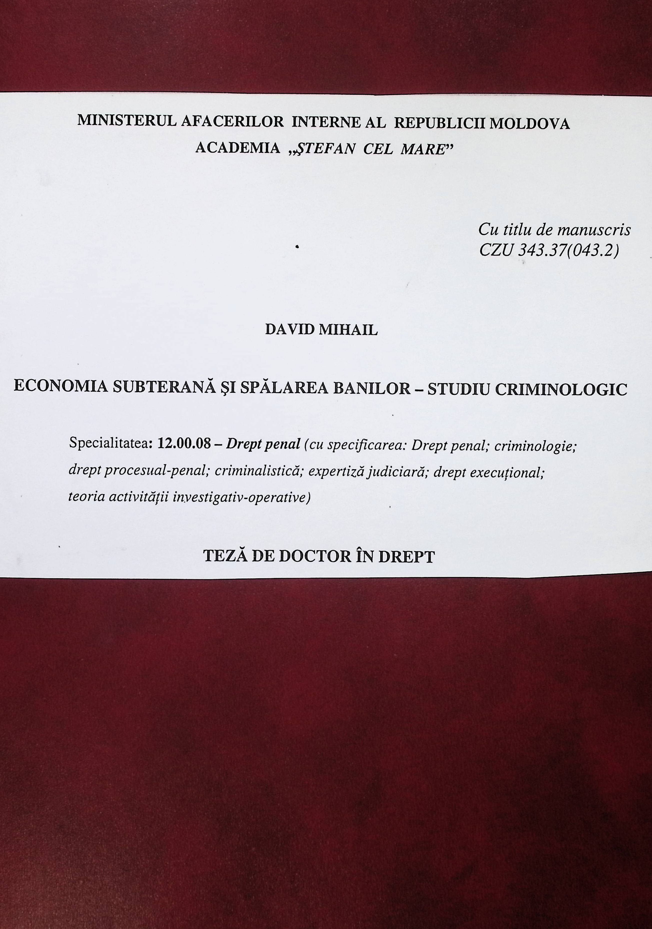 Denumirea:Economia subterană și spălarea banilor - studiu criminalistic