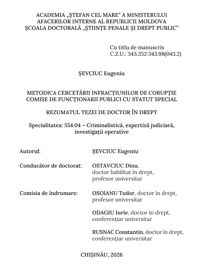 Specialitatea: 554.04 - Criminalistică, expertiză judiciară, investigații operative