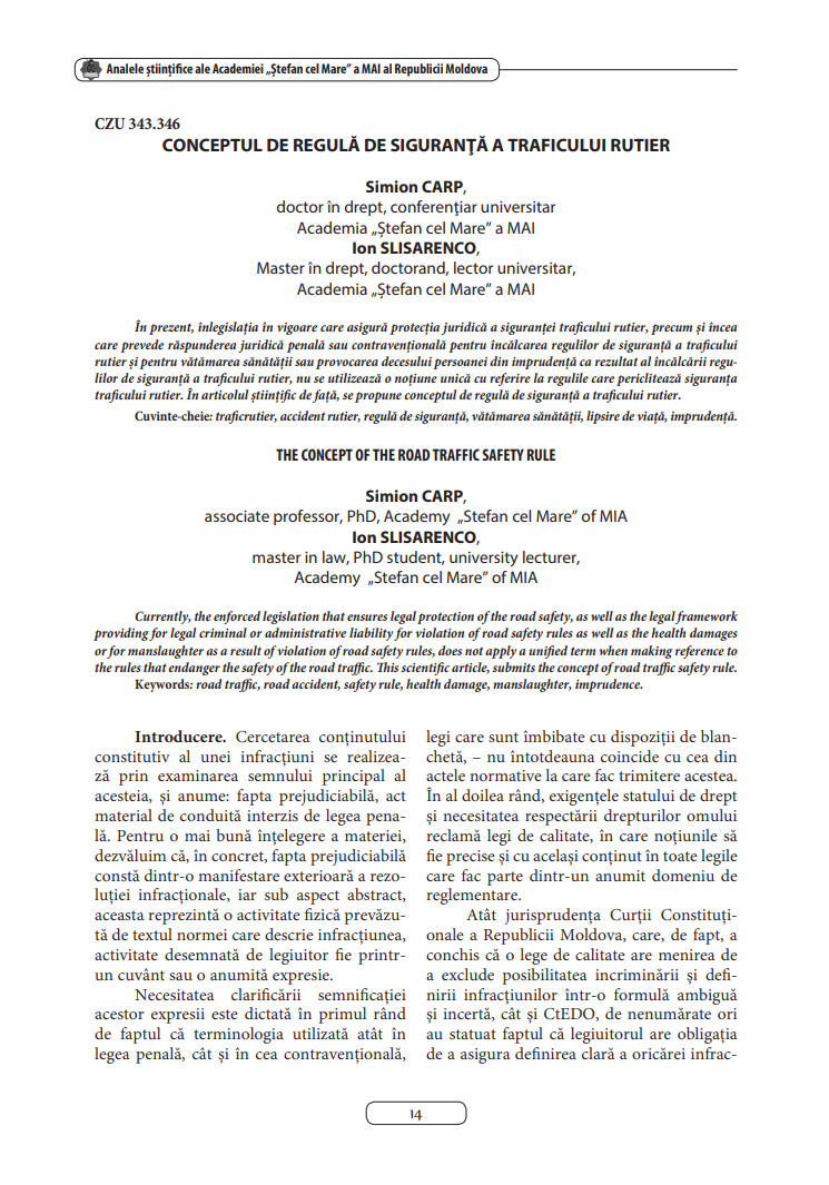 Дополнительное название:În: Analele ştiinţifice ale Academiei „Ştefan cel Mare” a Ministerului Afacerilor Interne a Republicii Moldova: Ştiinţe juridice. Ediţia a 18-a / redactor-şef: Simion Carp; Academia „Ştefan cel Mare” a Ministerului Afacerilor Interne al Republicii Moldova. Chişinău: Academia „Ştefan cel Mare” a MAI al Republicii Moldova, 2018, pp. 14-23