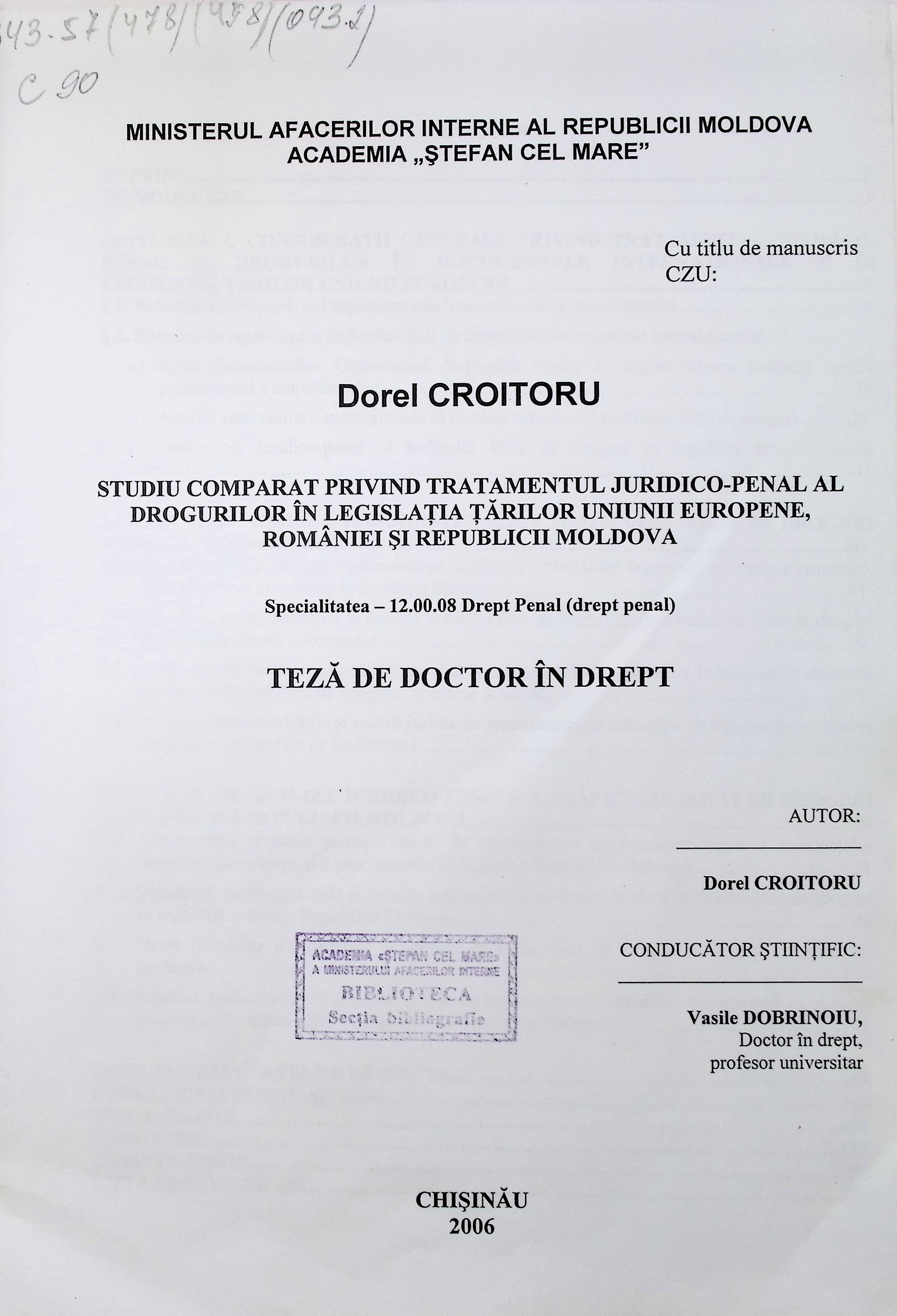 Teză de doctor în drept. Specialitatea: 12.00.08 Drept penal