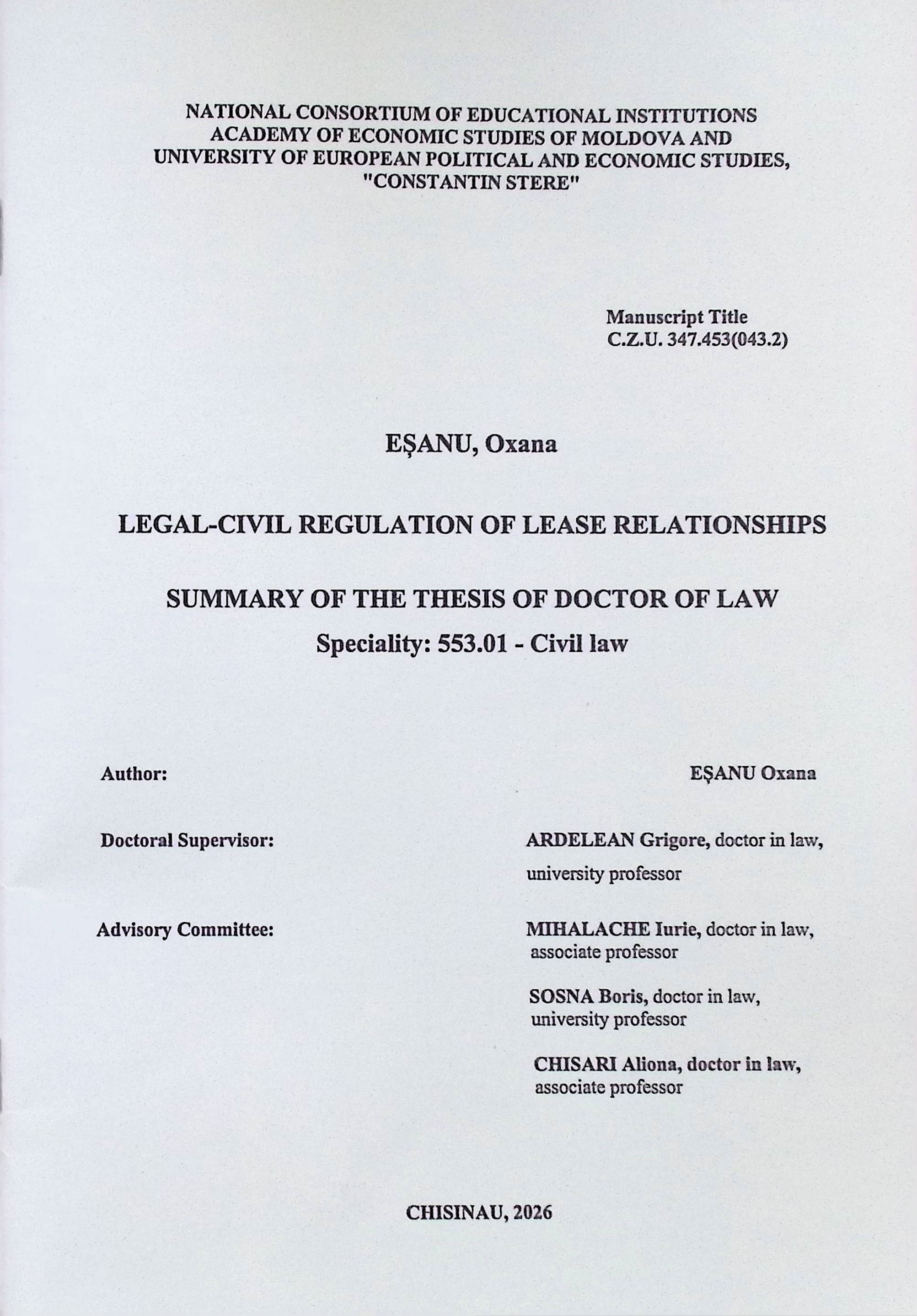 Название:Legal-Civil Regulation of Lease Relationships Summary of the Thesis of Doctor of Law