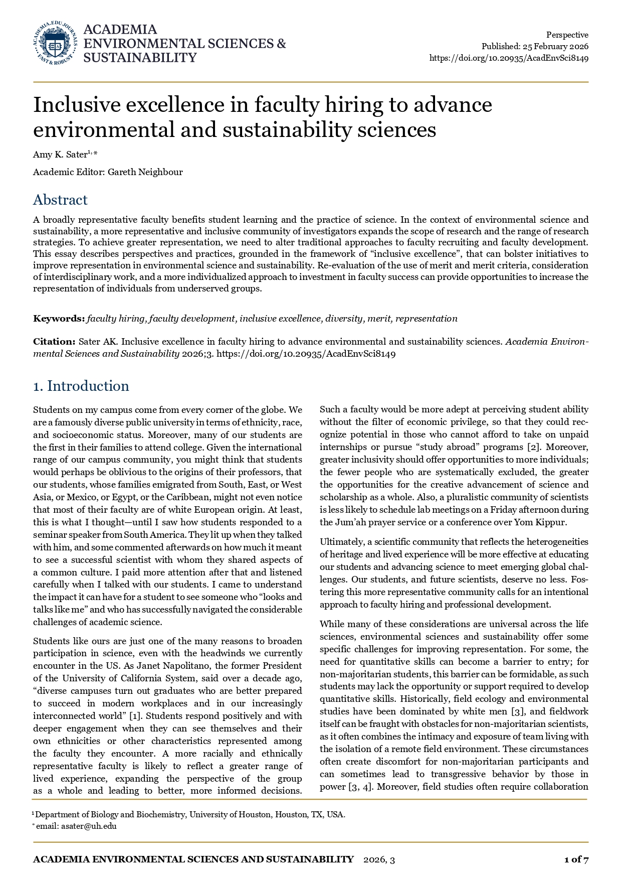 Название:Inclusive excellence in faculty hiring to advance environmental and sustainability sciences