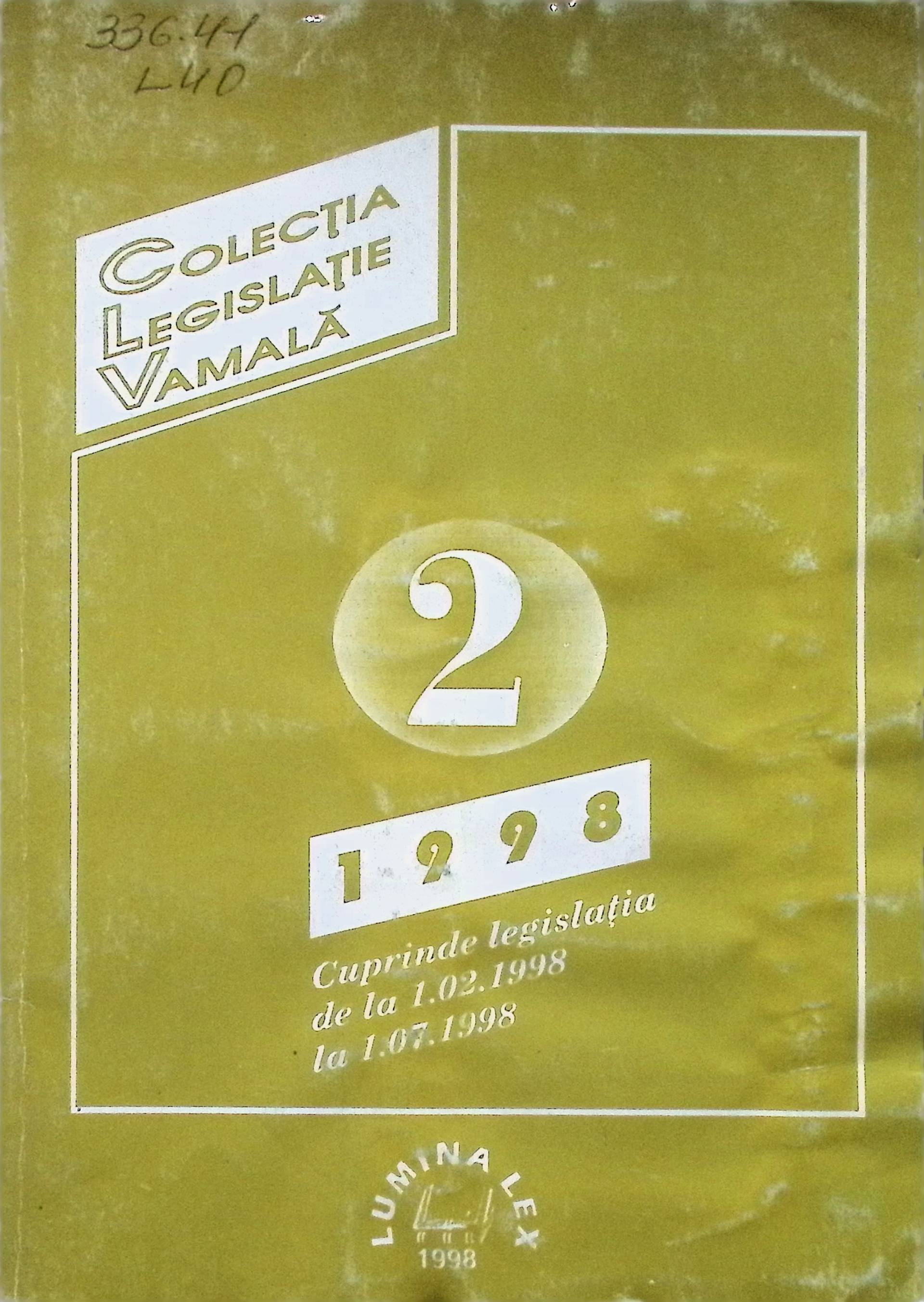 Volumul II Cuprinde legislația de la 1.02.1998 la 1.07.1998