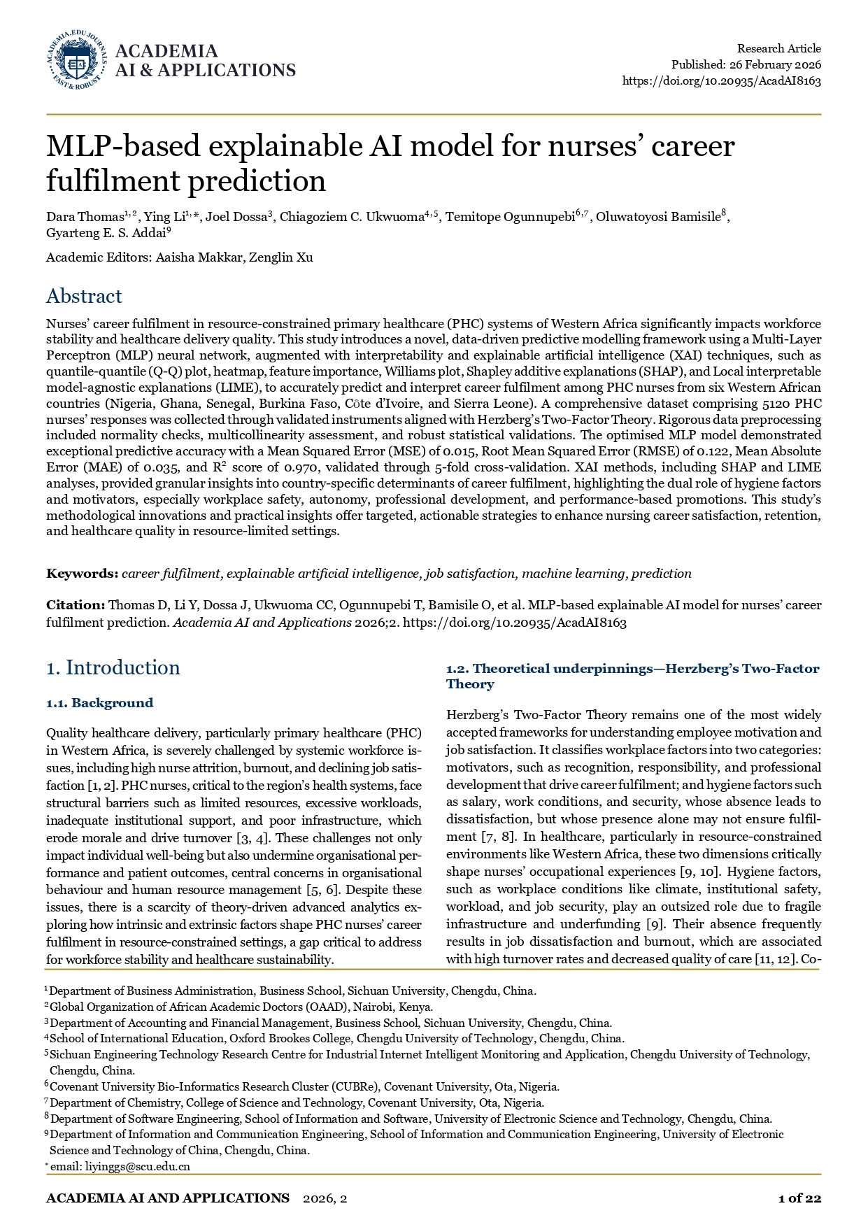 Информация к названию:În: Academia AI and Application 2026, 2; Published: 26 February 2026 / Academic Editors: Aaisha Makkar, Zenglin Xu / Department of Business Administration, Business School, Sichuan University, Chengdu, China. Global Organization of African Academic Doctors (OAAD), Nairobi, Kenya. Department of Accounting and Financial Management, Business School, Sichuan University, Chengdu, China